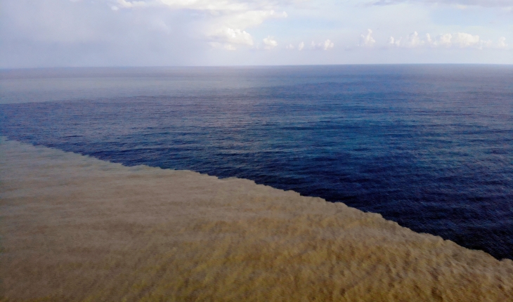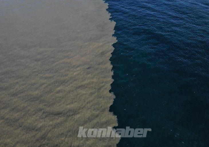 Sel sularının vurduğu ve büyük hasar alan Kastamonu'nun Bozkurt ilçesinden geçen Ezine çayı çamur renginde Karadeniz'e akıyor. Çayın deniz ile ile birleştiği alanda Karadeniz iki renk oldu.