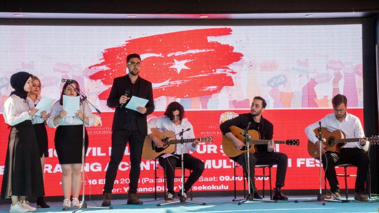 Selçuk Üniversitesi Yabancı Diller Yüksekokulu ile Erasmus+ Kurum Koordinatörlüğü tarafından Cumhuriyetimizin 100. Yılında 100 Etkinlik kapsamında düzenlenen “100. Yıl Dil ve Kültür Şenliği (Celebrating a Centuriy: Multi Culti Fest)”, Rektör Prof. Dr. Metin Aksoy’un katılımıyla gerçekleştirildi.