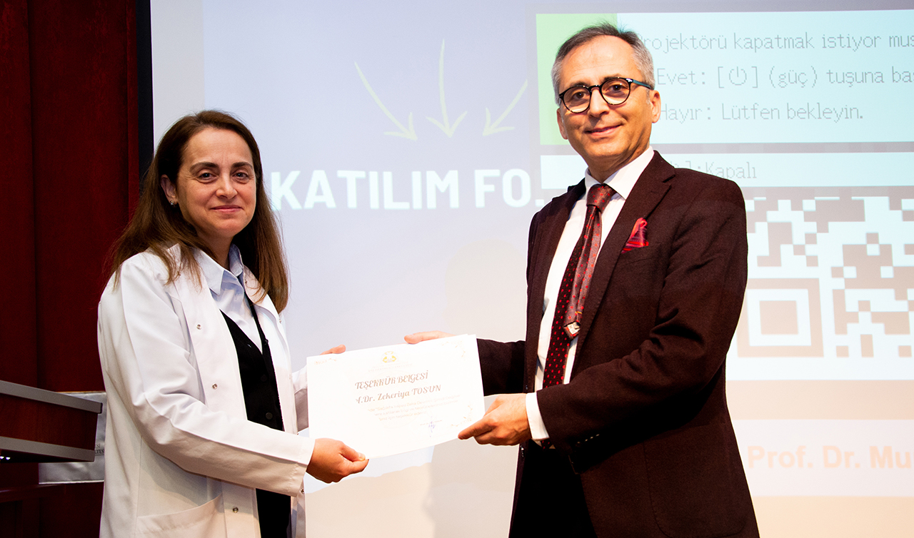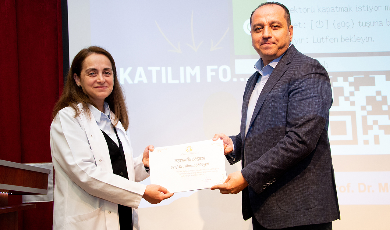 Konferans soru – cevap bölümünün ardından Diş Hekimliği Fakültesi Dekanı Prof. Dr. Gül Tosun’un konuşmacılara teşekkür belgesi takdimiyle sona erdi.