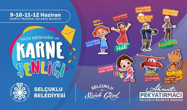 Selçuklu Belediyesi, 9-10-11-12 Haziran tarihlerinde Kelebekler Vadisi Parkı’nda “Yaza Merhaba ve Karne Şenliği” düzenliyor. Selçuklu Belediye Başkanı Ahmet Pekyatırmacı, tüm çocuklar ve ailelerini karne şenliğine davet etti.