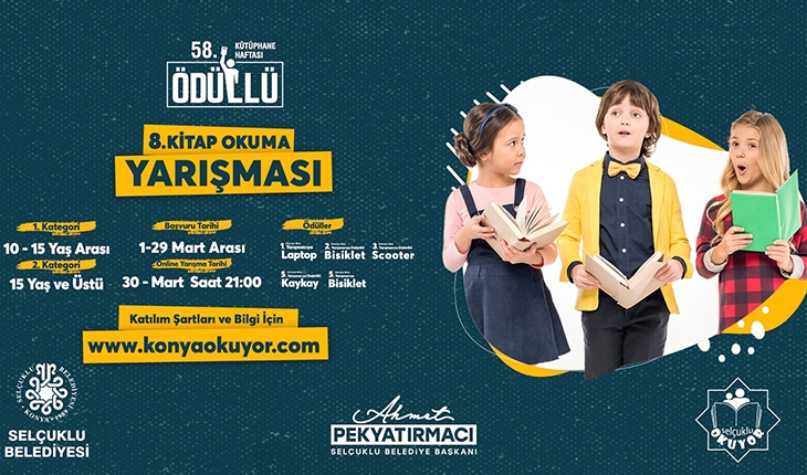 Selçuklu Belediyesi tarafından 58. Kütüphaneler haftası etkinlikleri kapsamında ödüllü okuma yarışması gerçekleştiriliyor. 1 Mart itibariyle başvuruları başlayan yarışmaya 29 Mart tarihine kadar www.konyaokuyor.com sitesinden başvuru yapılabilecek. Yarışma ile çocuklara, gençlere ve yetişkinlere kitap okuma alışkanlığı ve bilinci kazandırılması planlanıyor.