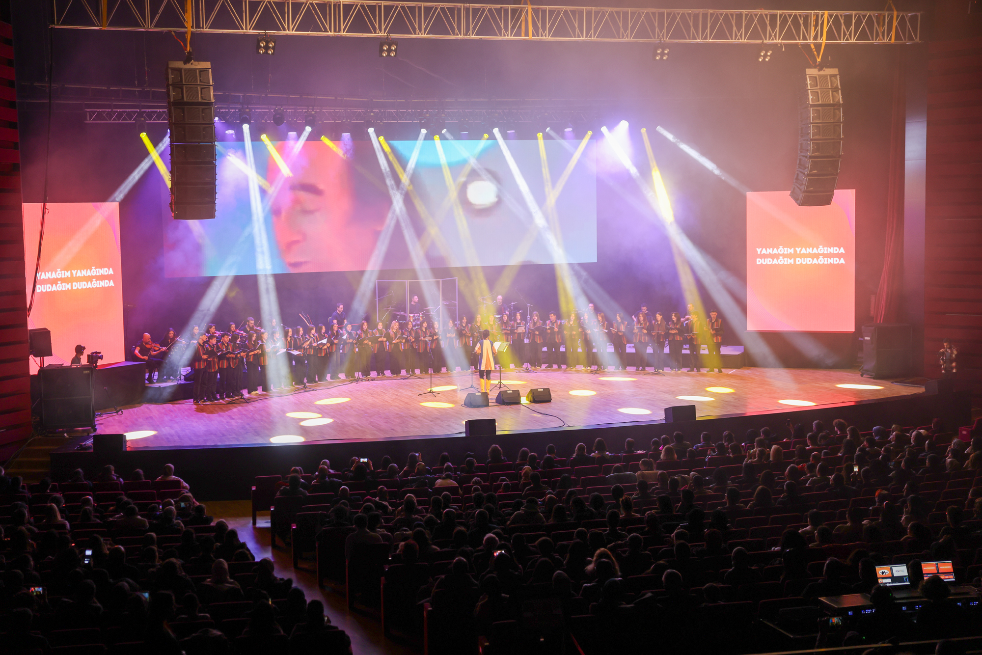 Genç Korosu sergiledikleri üstün performans ile büyük beğeni alırken müzikseverler zaman zaman şarkılara eşlik etti.