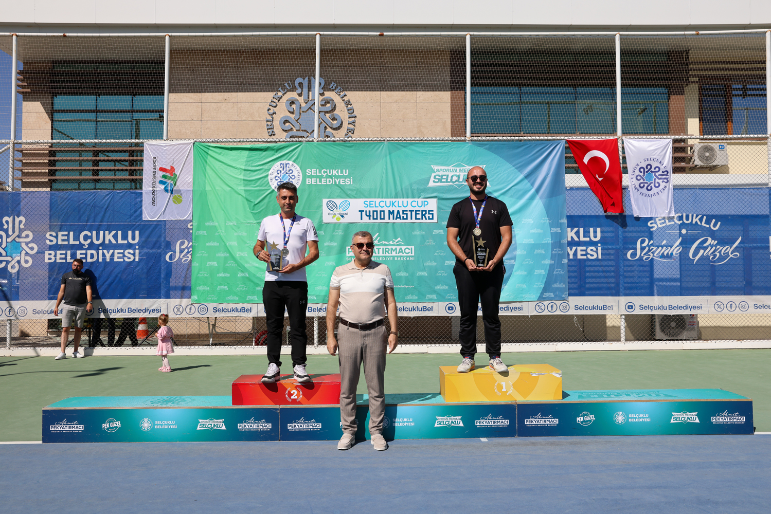 Turnuvada dereceye giren sporcular için ödül töreni düzenlendi. Selçuklu Belediye Başkanı Ahmet Pekyatırmacı da törene katılarak başarılı olan sporculara madalyalarını verdi. Törene Başkan Pekyatırmacı’nın yanı sıra Selçuklu Belediyespor Kulübü Başkanı Mustafa Yavuz Tezcan, Selçuklu Belediyespor Kulübü Yönetim Kurulu Üyeleri Mehmet Ali Çakar ile Mustafa Uysal, Konyaspor Kulübü Yönetim Kurulu Üyesi Cengiz Yönet ve Türkiye Tenis Federasyonu Konya İl Temsilcisi Ümit Dışpınar da katıldı.