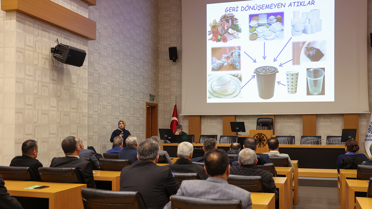 Selçuklu Belediyesi, gelecek nesillere temiz ve daha yaşanılabilir bir dünya bırakma hedefi doğrultusunda çevre ve sıfır atık çalışmalarını aralıksız sürdürüyor. Bu doğrultuda çevre bilincini artırmak, geri dönüşüm alışkanlığını yaygınlaştırmak ve toplumsal farkındalık oluşturmak amacıyla çeşitli eğitim programları ve ödüllü yarışmalar da düzenleniyor. İklim Değişikliği ve Sıfır Atık Müdürlüğü koordinasyonunda yürütülen çalışmalar kapsamında bu kez mahalle muhtarlarına yönelik eğitim programı düzenlendi. Eğitime Çevre Şehircilik ve İklim Değişikliği İl Müdürlüğü uzmanları da katıldı.