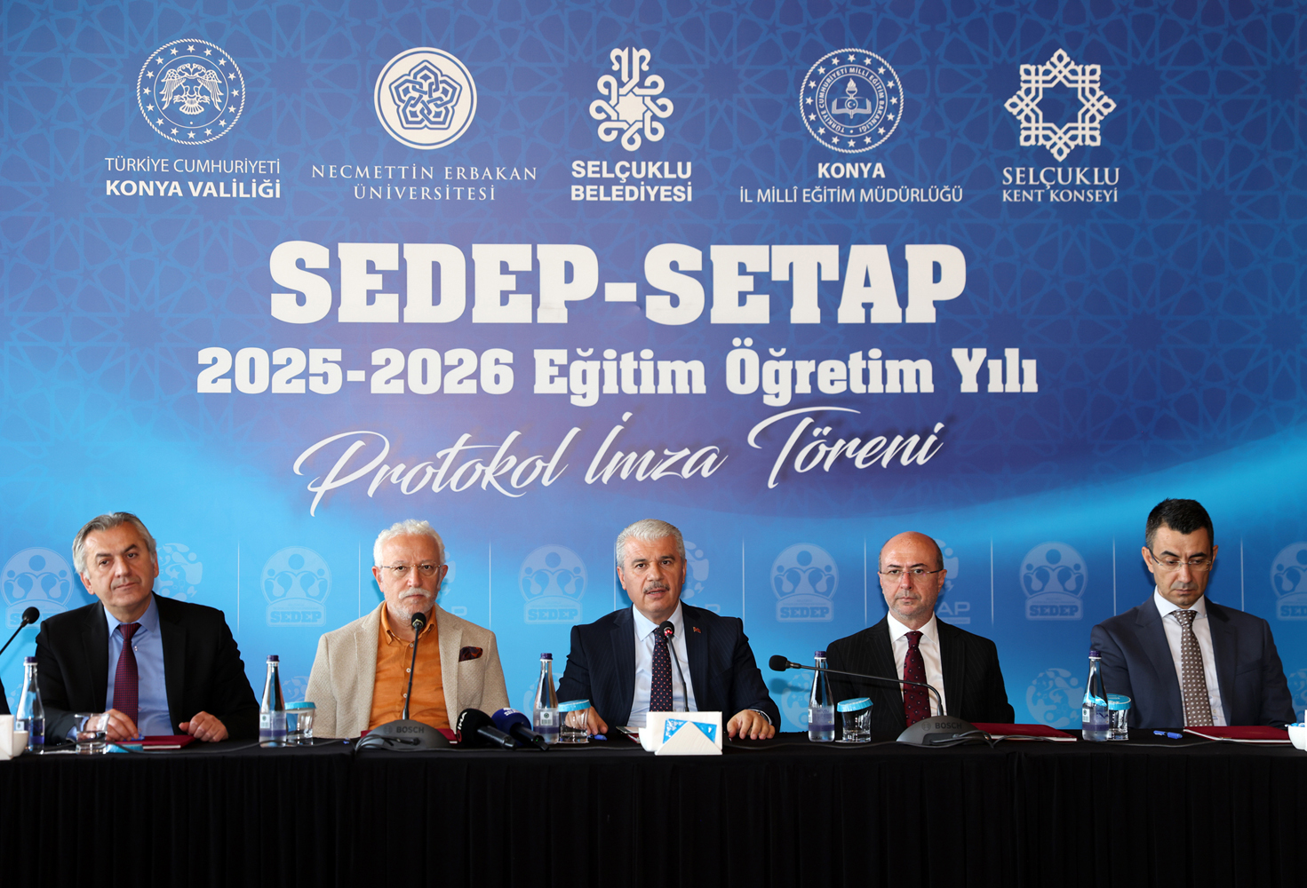 Selçuklu Belediyesi öncülüğünde Konya Valiliği, Necmettin Erbakan Üniversitesi, Konya İl Milli Eğitim Müdürlüğü ve Selçuklu Kent Konseyi iş birliği ile 2025-2026 Eğitim Öğretim Döneminde sürdürülecek olan “Selçuklu Değerler Eğitimi Programı (SEDEP)- Sanat, Eğitim, Teknoloji ve Atölye Programının (SETAP) protokolü gerçekleştirildi.