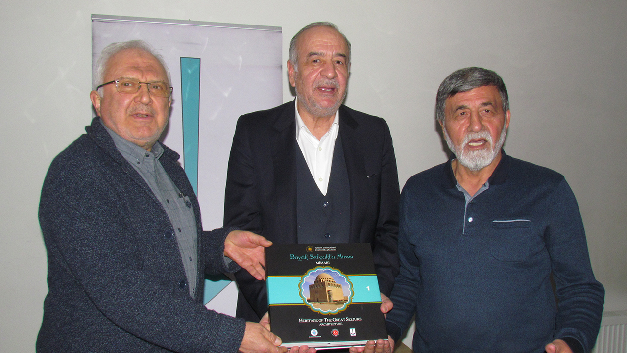 Program sonunda Aydınlar Ocağı Başkanı Dr. Mustafa Güçlü ve Başkan Yardımcısı Mustafa Sinan Ümit günün hatırası olarak konuşmacı Tahir Büyükhelvacıgil’e kitap takdim etti.(Büşra Üstündağ)