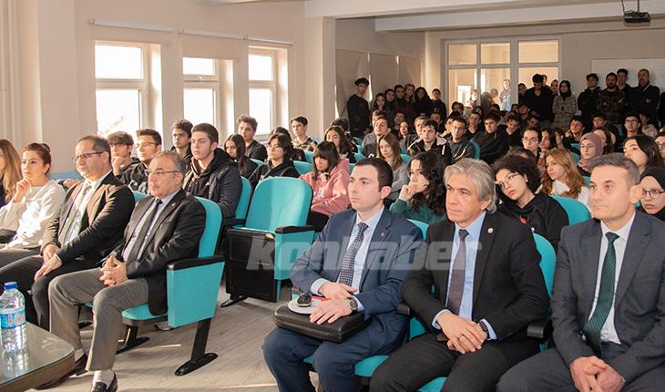 Selçuk Üniversitesi Rektörü Prof. Dr. Metin Aksoy, Selçuklu Anadolu Lisesinde düzenlenen "Üniversiteye 1 Adım Kala... Mesleğini Uzmanından Dinle" adlı söyleşiye katıldı.