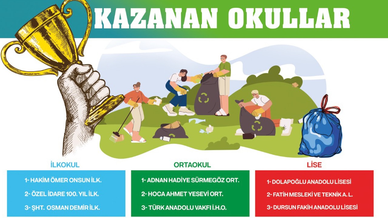 103 okulun toplamda 117 bin 675 kilogram atık topladığı yarışmada ilkokul kategorisinde Hakim Ömer Onsun İlkokulu, Ortaokul kategorisinde Adnan Hadiye Sürmegöz Ortaokulu, Lise kategorisinde ise Dolapoğlu Anadolu Lisesi birinci olmayı başardı.