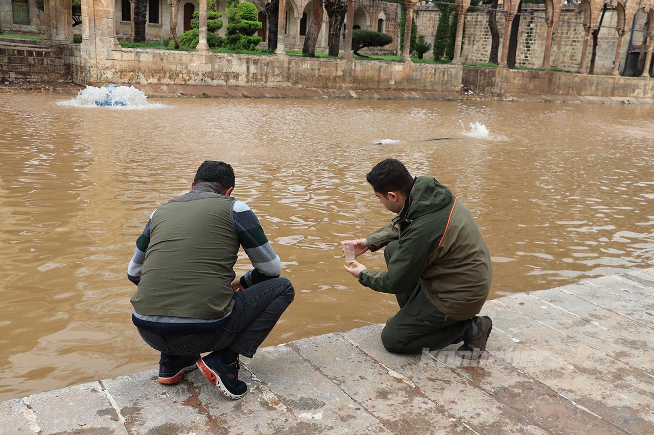 Öte yandan Şanlıurfa Doğa Kuruma ve Milli Parklar ekipleri de Balıklıgöl'de incelemelerde bulundu, analiz için sudan numuneler aldı. Selle taşınan çöpler sudan temizlenirken, Balıklıgölün'ün yanındaki kanala vatandaşların yem atması sonucu balıkların yüzeye çıktığı da görüldü.