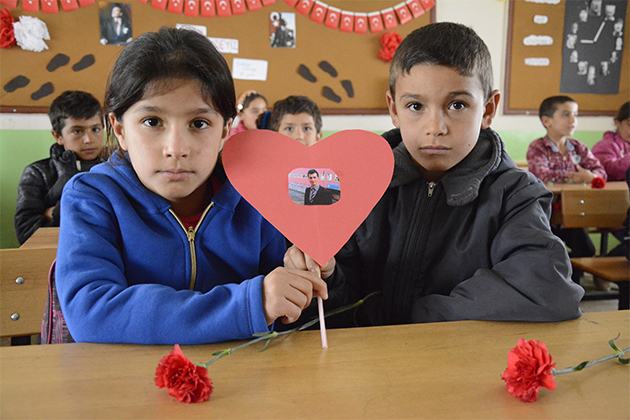 Şanlıurfa'dan memleketi Gümüşhane'ye giderken Tunceli'de terör örgütü PKK mensuplarınca kaçırıldıktan sonra şehit edilen sınıf öğretmeni Necmettin Yılmaz’ın Siverek ilçesindeki öğrencileri, 24 Kasım Öğretmenler Günü'nü buruk kutladı.