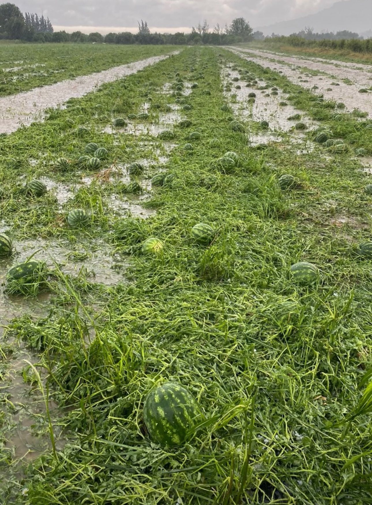 Doludan ve su baskınından seralardaki ekili domates, kavun, biber gibi ürünler ile açık alanda hasadına hazırlanılan karpuzlar zarar gördü.