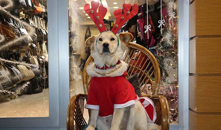 Sevimliliği sayesinde sokak hayvanlarının karnının doymasını sağlayan Boncuk isimli köpek yılbaşı öncesi özel kıyafeti sayesinde gelirini ikiyi katladı.