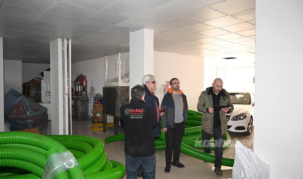Seydişehir'de iş yerlerinde kolon ve kirişlerde kesilme olup olmadığını denetlendi.