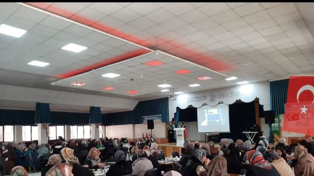 Seydişehir ilçesinde İnsan Hak ve Hürriyetleri (İHH) Kadın Kolları üyeleri, Gazze için bir araya geldi.