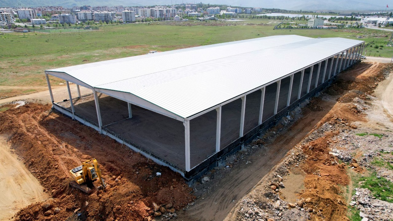 Hafif Sanayi Bölgesi Hububat Borsası arkasında inşaat çalışmaları hızla devam eden Soğuk Hava Deposu, Meyve-Sebze Kurutma, Tohum Eleme ve Kurutma Tesisi Projesini Belediye Başkanı Mehmet Tutal yerinde inceleyerek çalışmalar hakkında bilgi aldı.