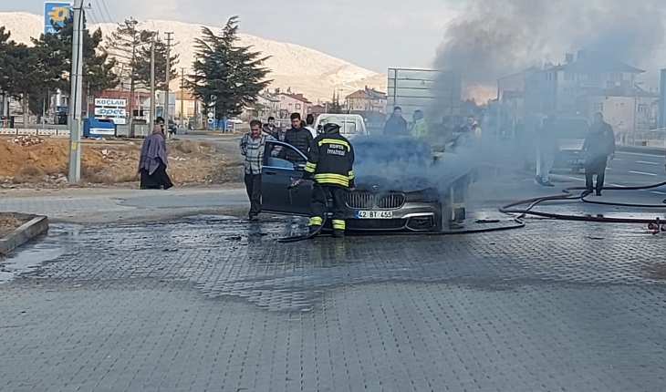 Konya-Akşehir D-300 karayolunda 42 BT 455 plakalı araç seyir halindeyken yanmaya başladı.