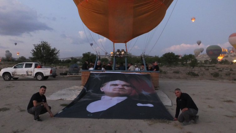 Balon pilotu Ahmet Başyiğit, gazetecilere, 30 Ağustos Zafer Bayramı nedeniyle iyi bir uçuş gerçekleştirmeyi planladıklarını ifade ederek, "Türk bayraklarımızı balonlarımıza astık. Tüm şehit ve gazilerimizi rahmet ve minnetle anıyoruz. Bu özel günlerde onları hatırlamaktan kıvanç duyuyoruz." dedi.