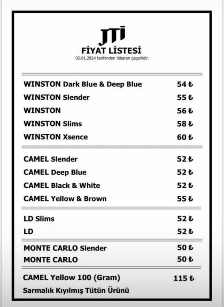 Böylelikle bu sigara grubundaki en ucuz sigara fiyatı 52 TL'ye çıktı. En pahalı sigara ise 58 TL ile 60 TL arasından satılmaya başlandı.