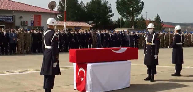 Siirt Havalimanı'nda düzenlenen törende, terör örgütü PKK'ya yönelik operasyonda şehit olan Jandarma Uzman Çavuş Erkan Erdem'in (28) Türk bayrağına sarılı tabutu, katafalka konuldu.