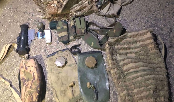 Bakan Soylu'nun paylaşımında, yakalanan teröristle birlikte ele geçirilen kamuflaj malzemeleri, tabanca, şarjör, gece görüş dürbünü, el bombası ve çeşitli malzemelerin fotoğrafı da yer aldı.