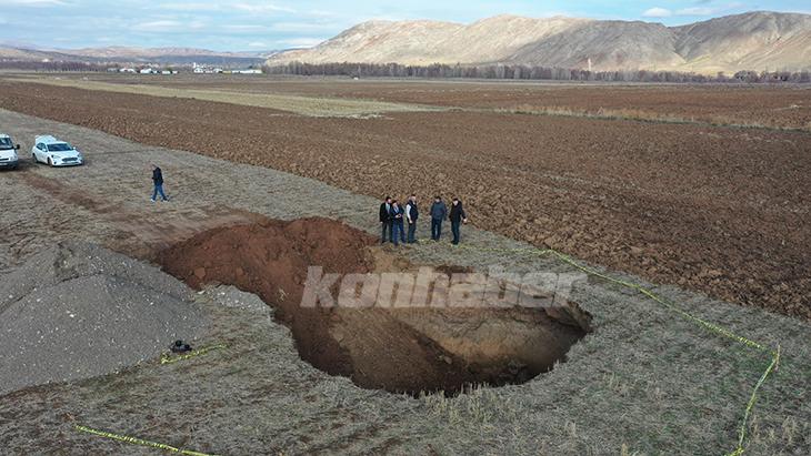 Daha sonra bölgeye yaklaştığını anlatan Soğancıoğlu, "Yaklaşık 20 metre derinliğinde obruk oluşmuş. Su görmedim, hala kıyıları uçuyordu. Panikle hayvanlarımı alarak uzaklaştım. Yetkililere bildirdim, onlar da tarla sahibine bildirdi." diye konuştu.