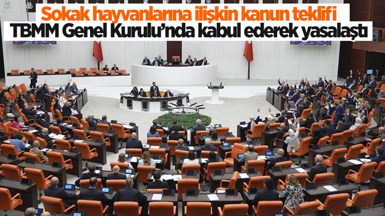 Sahipsiz hayvanlara yönelik düzenlemeler içeren Hayvanları Koruma Kanunu'nda Değişiklik Yapılmasına Dair Kanun Teklifi, TBMM Genel Kurulunda kabul edilerek yasalaştı.