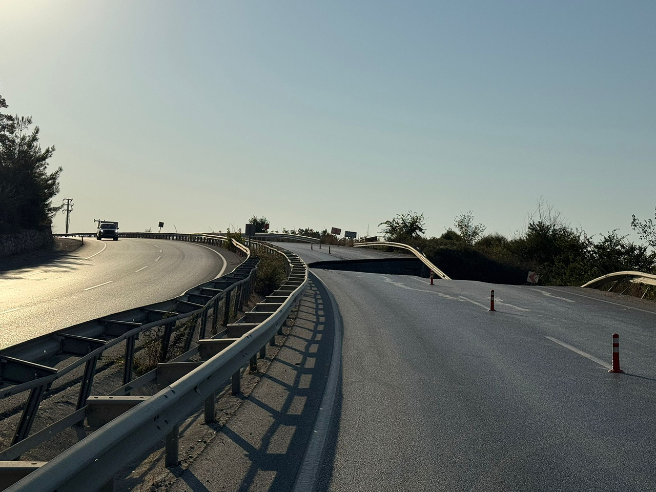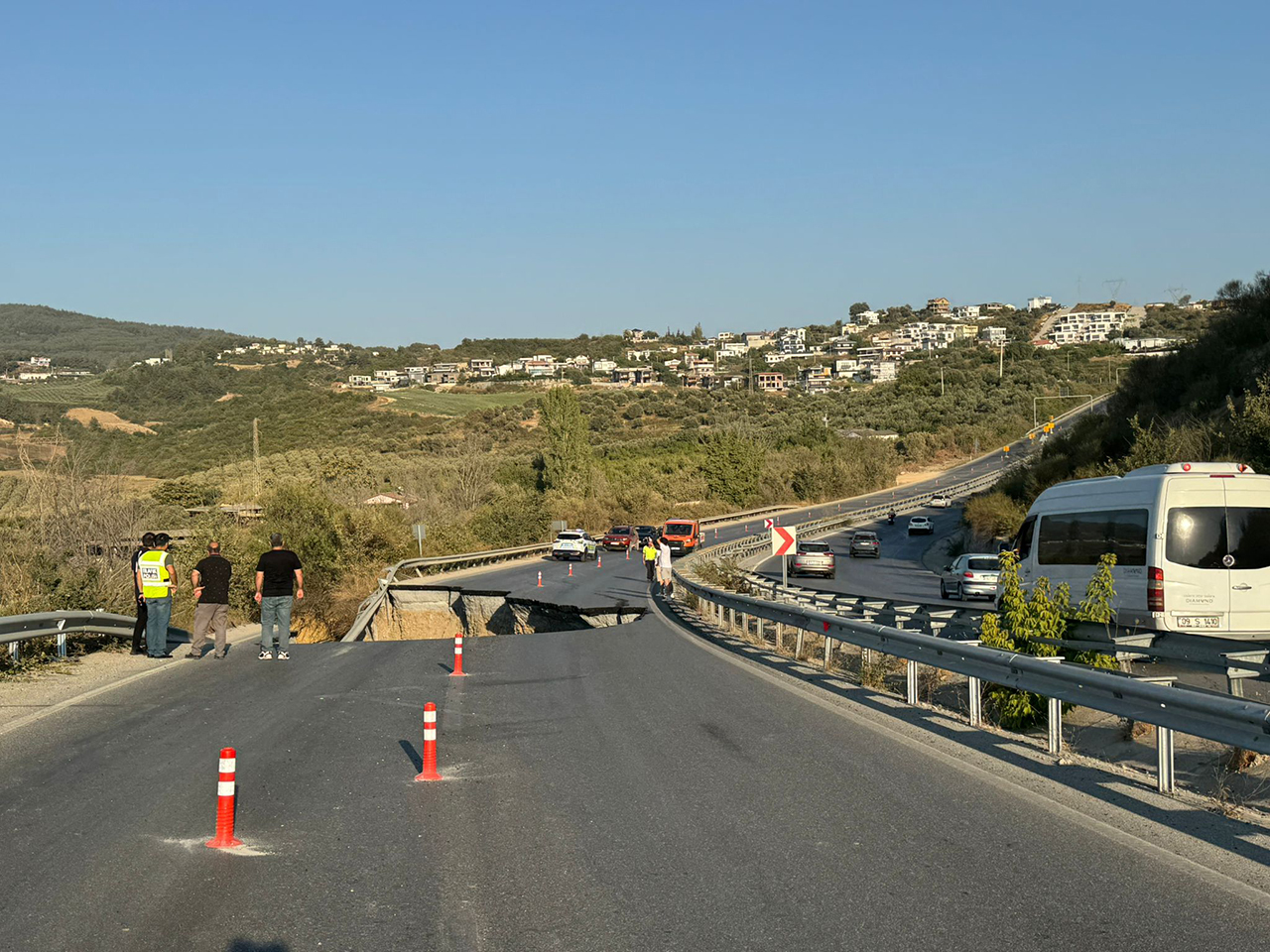Kuşadası-Söke kara yolunda meydana gelen çökme sonucu Kuşadası'na gidiş yönü trafiğe kapatıldı.