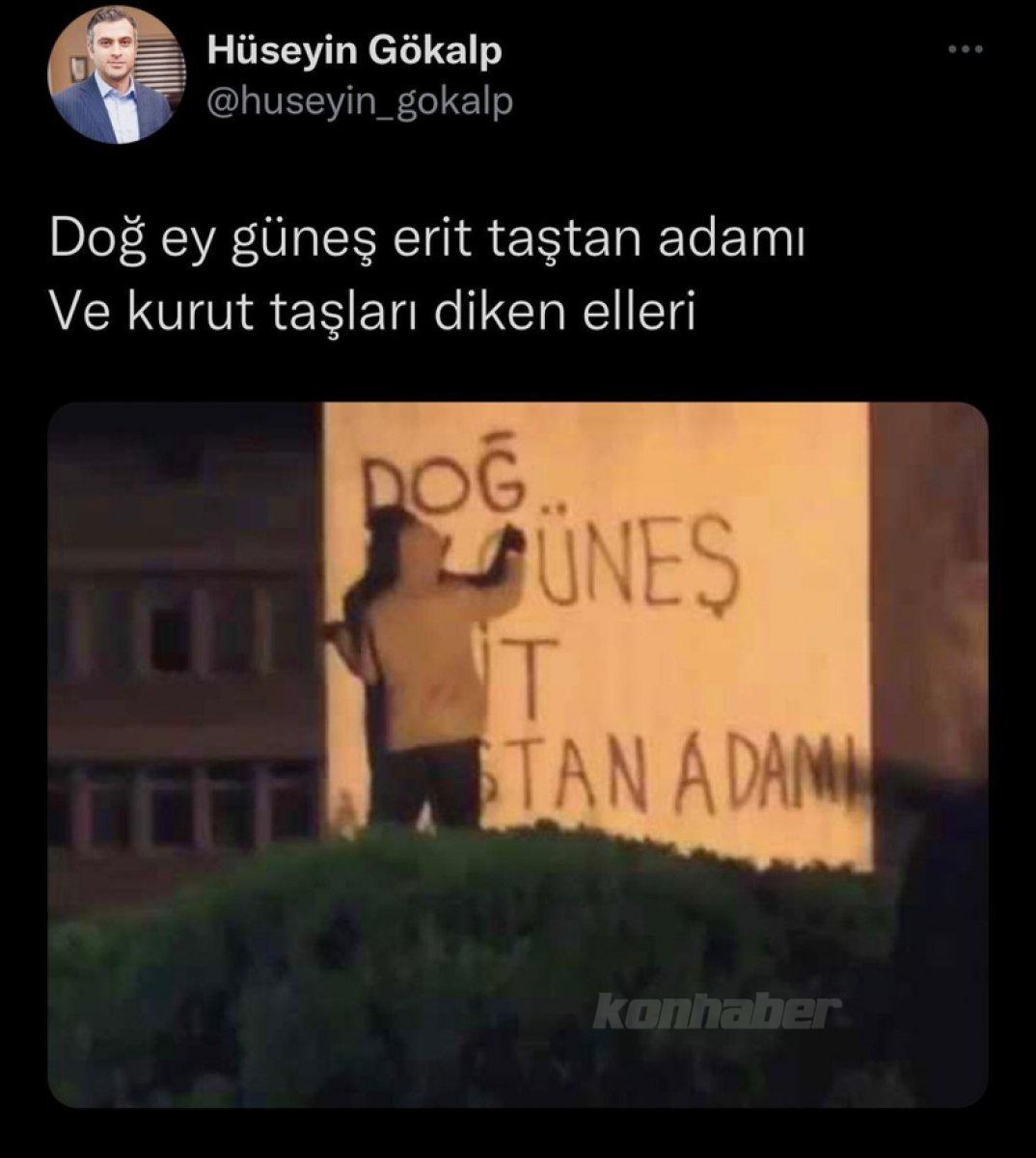 Selçuk Üniversitesi İslami İlimler Fakültesi Öğretim Üyesi Hüseyin Gökalp’in 10 Kasım’da "Doğ ey güneş erit taştan adamı. Ve kurut taşları diken elleri.” ifadelerinin yer aldığı sosyal medya paylaşımı gündem olmuştu.