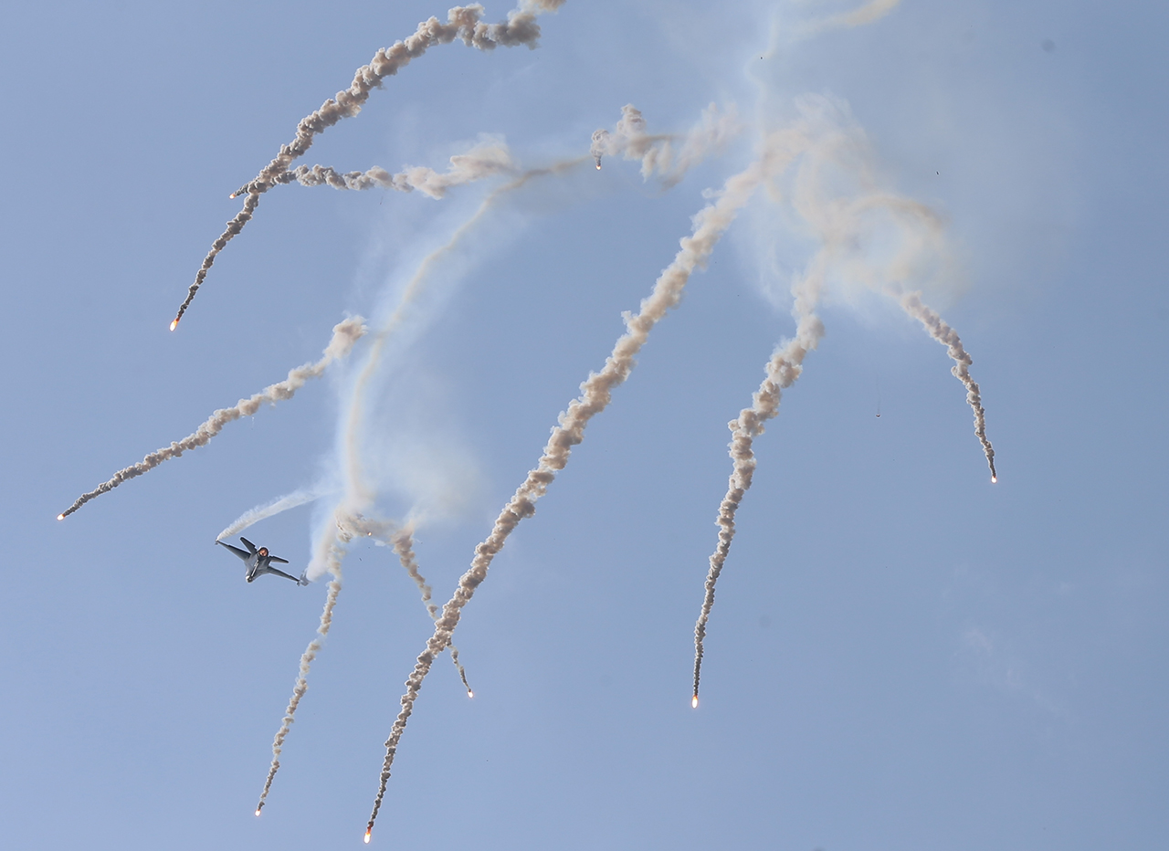 SOLOTÜRK pilotlarının yaptığı akrobasi hareketleri kentin birçok noktasından görüldü. Kocaçukur ve Pamukkale travertenlerini dolduran binlerce kişi uçuşları ilgiyle izledi.