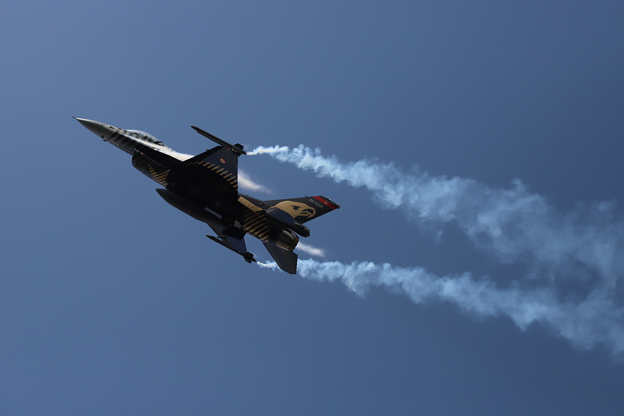 Antalya Havalimanı'ndan havalanan SOLOTÜRK, Denizli Valiliği ile İl Kültür Turizm Müdürlüğü iş birliğiyle organize edilen 29 Ekim Cumhuriyet Bayramı kutlamaları kapsamında ören yeri çevresi ve travertenler üzerinde gösteri uçuşu yaptı.