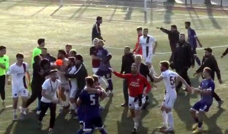 Sakarya’da Süper Amatör Lig’de oynanan müsabakada son düdüğün ardından olaylar çıktı. Yeşil sahanın adeta boks ringine dönüştüğü anlar saniye saniye kaydedildi.