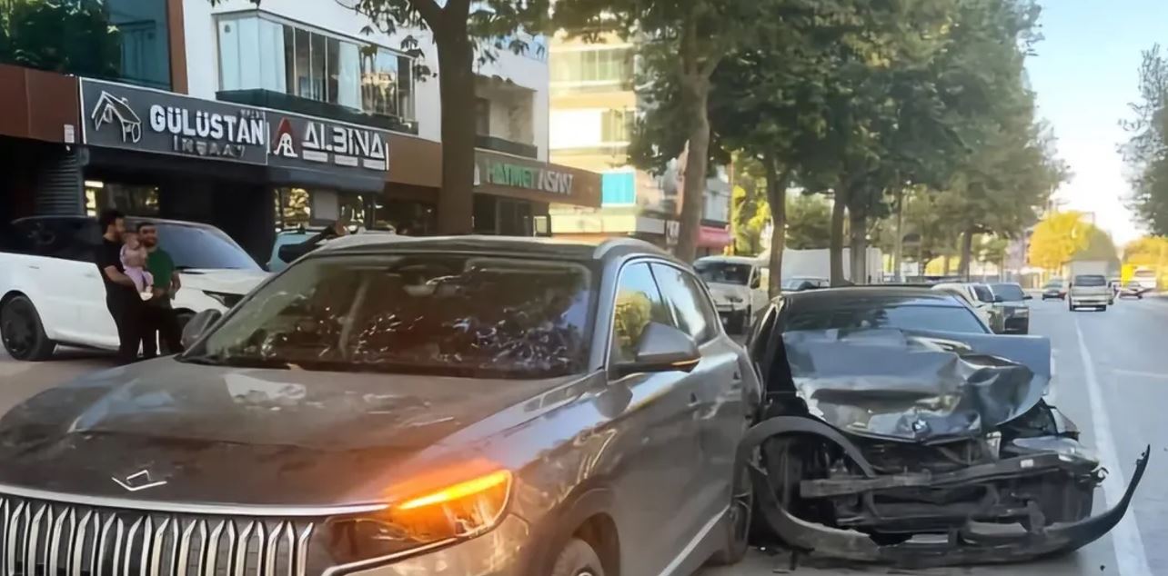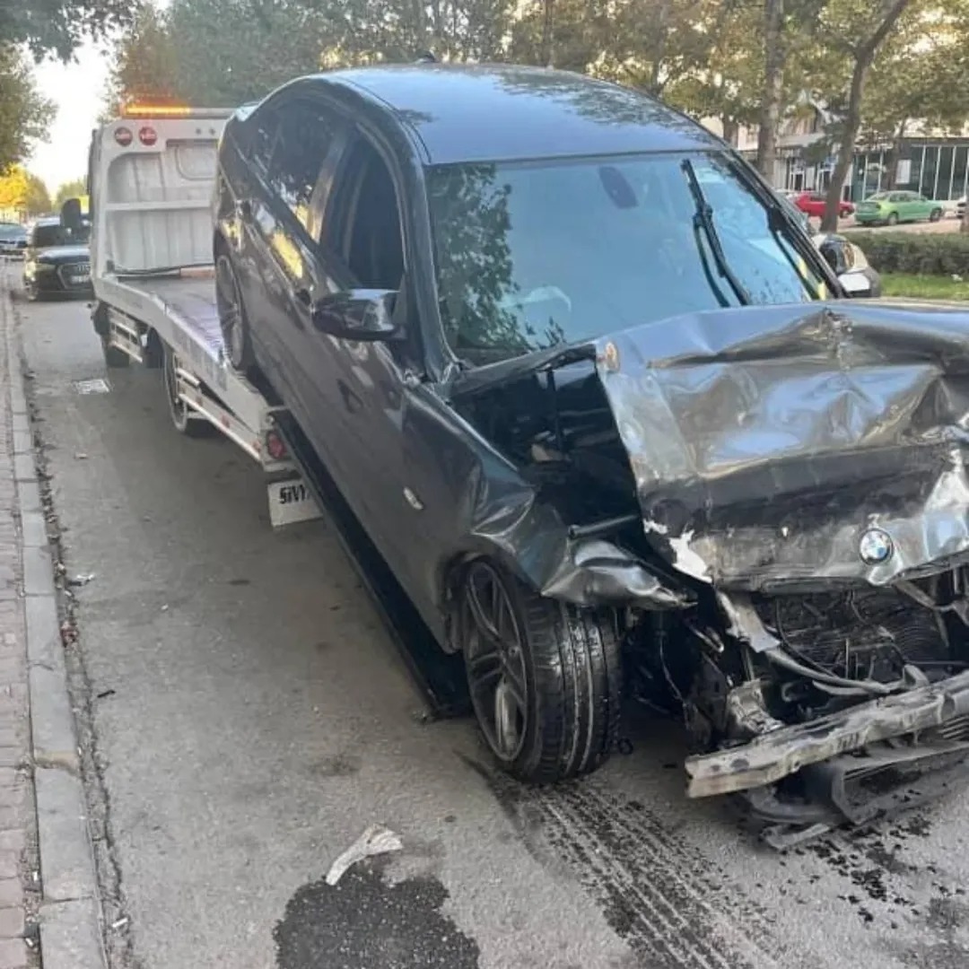 TOGG T10X’e arkadan çarpan BMW’nin ön tarafının paramparça olduğu görüldü.