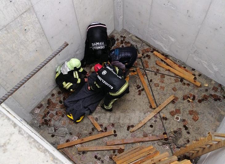 Denizli’nin Honaz ilçesinde inşaatta çalıştığı sırada dengesini kaybederek su deposuna düşen işçi, itfaiye ekiplerinin yaklaşık yarım saatlik çalışması sonucu kurtarıldı.