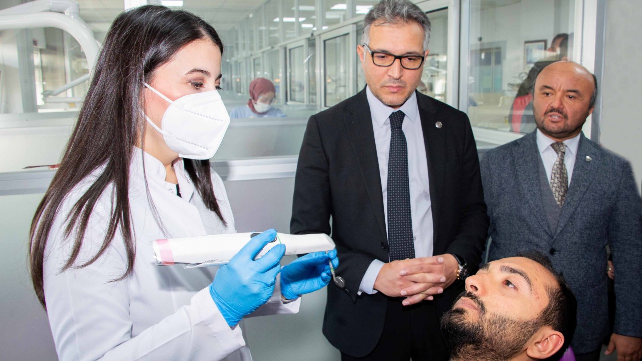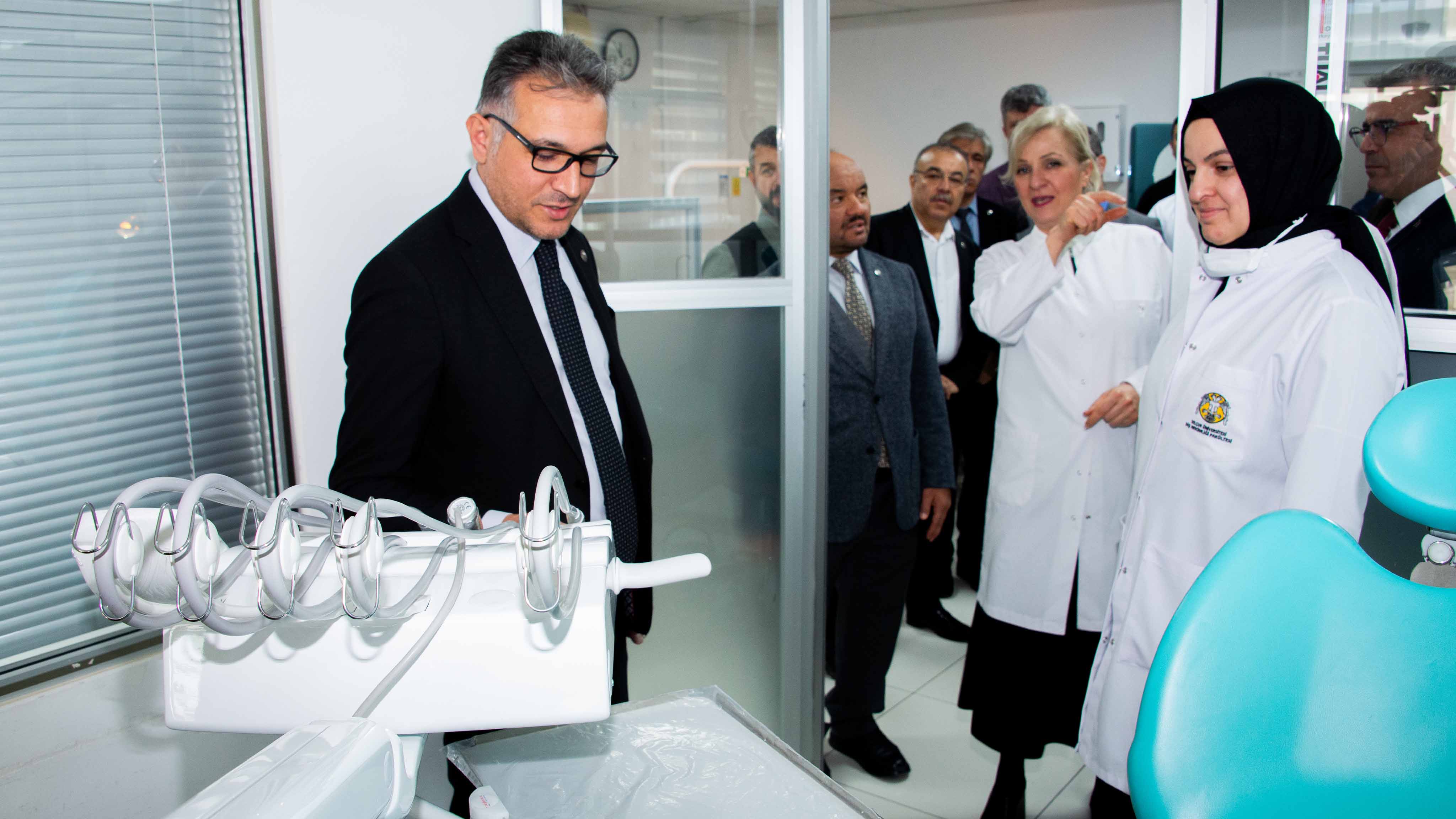 CAD–CAM Laboratuvarının açılışının ardından Rektör Prof. Dr. Aksoy, kullanılan cihazları inceledi.