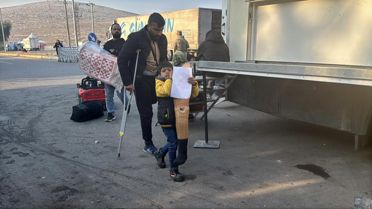 Hatay'da annesi ve kardeşinin yaşamını yitirdiği 6 Şubat 2023'teki depremde babasıyla 5 gün sonra enkazdan kurtarılan 6 yaşındaki Ömer Talha, babasının afette kaybettiği bacağının yerine takılan protezi taşıyarak sınırdan geçip hiç görmediği ülkesi Suriye'ye döndü.