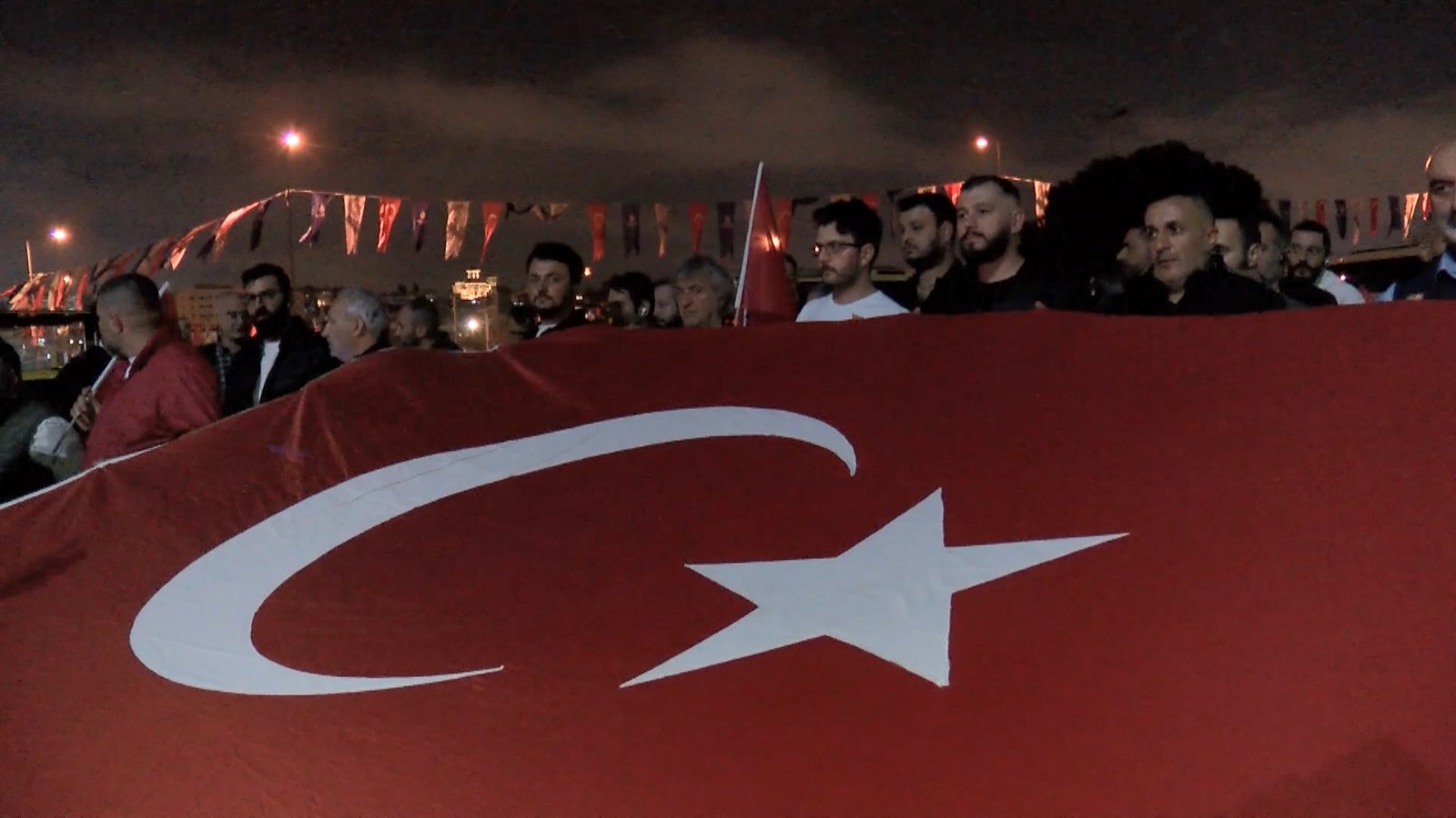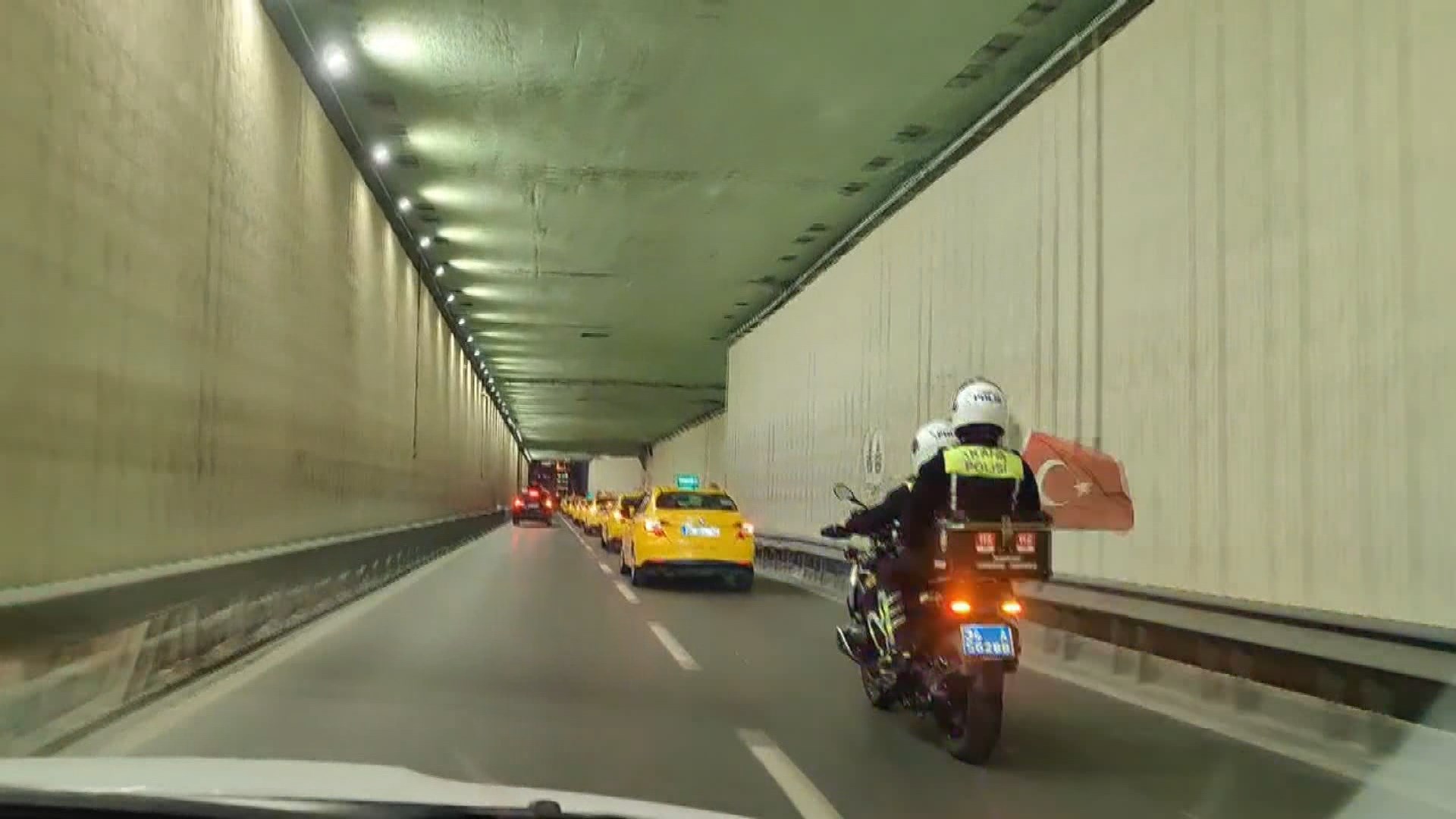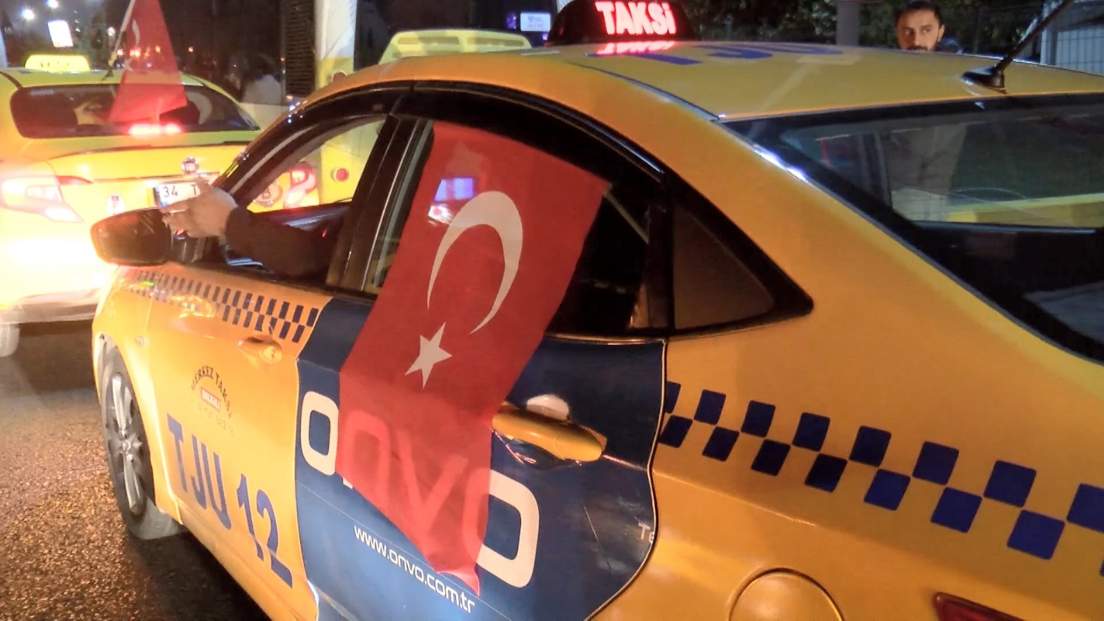 Şişli'de toplanan yüzlerce taksici, araçlarına astıkları Türk bayrakları ile konvoy halinde Yenikapı Etkinlik Alanı'na geldi.