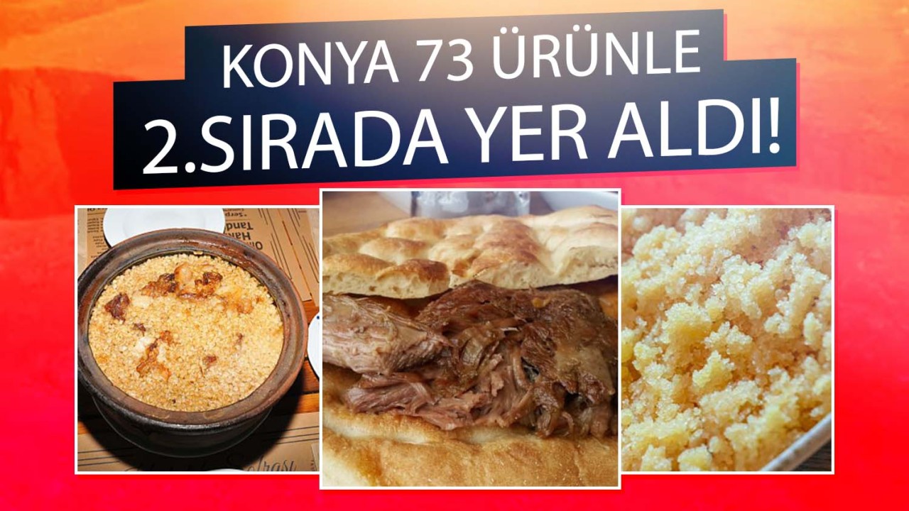 Konya, Akşehir hersesi, tandır kebabı, Derbent fasulyesi ve Konya irmik helvasının da aralarında bulunduğu 73 ürünle 2nci sırada dikkati çekti. Burma kadayıfı, ciğer kebabı, ekşili dolması ve hasır bileziğiyle öne çıkan Diyarbakır da 56 ürün tesciliyle 3üncü sırada yer aldı.