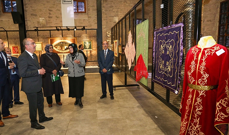 Her bir sanat dalımız ihtişamlı medeniyetimizin tüm güzelliklerini ve estetiğini en güzel şekilde anlatan ve yansıtan geleneksel sanatlarımız ecdadımızdan bize kalan en güzel mirastır. Türk-İslam kültür, sanat ve estetiğinin bütün inceliklerini üzerinde toplamış olan sim sırma sanatı da, insanımızın inancını, değerlerini, sabrını, geleneklerini, hayat tarzını, dünyaya karşı bakışını ve tavrını, duygu ve düşüncelerini, nezaketini, zarafetini en güzel ve en manidar şekilde anlatmaya çalışan zengin sanat dünyamızın en güzel renklerinden biri. Bunu buradaki eserleri görünce çok daha iyi anlıyor. Bu sanat için çaba harcayan, emek veren ve herşeyden önemlisi talebe yetiştiren Sabahat Endam Hanımefendi’ye ve pek çok konuda bizlere yardımcı ve destek olan Konya Yazma Eserler Kütüphanesi Bölge Müdürü Bekir Şahin’e şükranlarımı sunuyorum” diye konuştu.