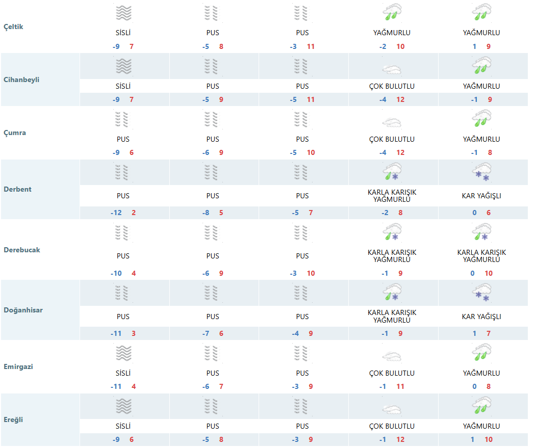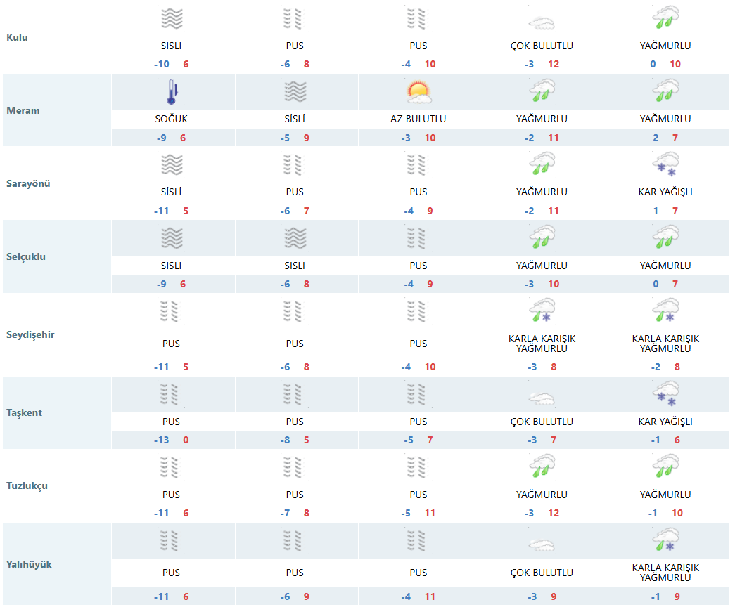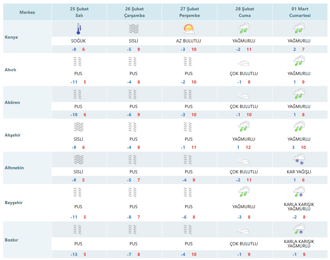 KONYA'DA 5 GÜNLÜK HAVA DURUMU