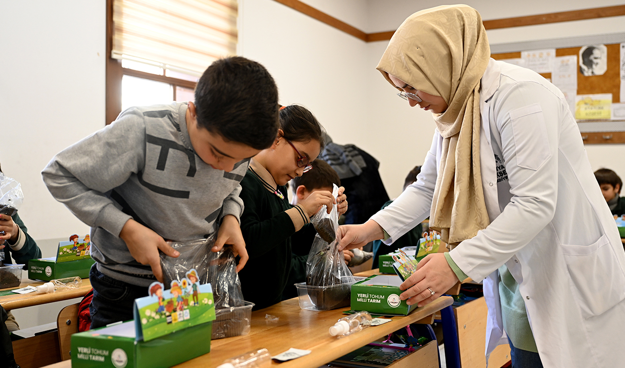 İl Milli Eğitim Müdürlüğünce belirlenen 64 okulda yürütülen "Yerli Tohum Milli Tarım" projesiyle öğrenciler, kendilerine hediye edilen "İlk Bahçem Seti" ile tere ekimi yaparak, tohum ekiminden hasada kadar tüm süreçleri uygulamalı olarak gözlemleme fırsatı buluyor.