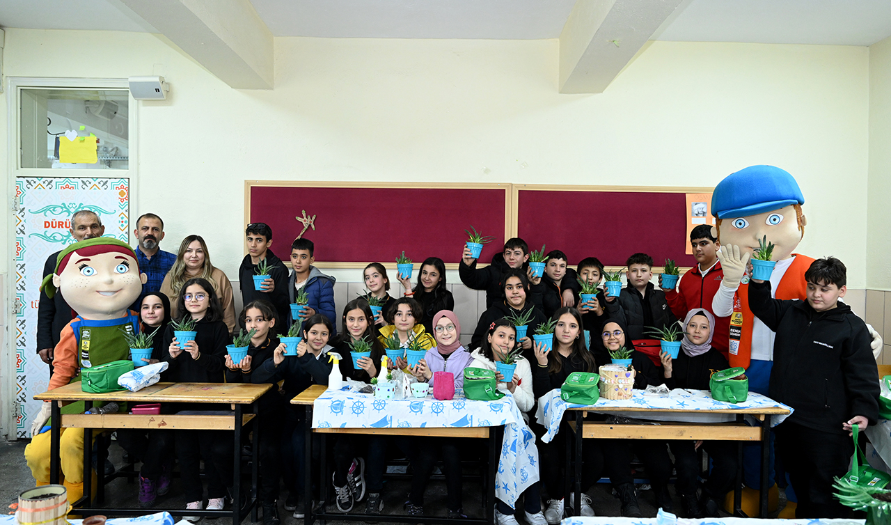 Bunun yanında "Konya Büyükşehir Tarım Çocuk Kitabı" ile öğrencilere öğrendiklerini pekiştirmeleri sağlanıyor. Okullarda geri dönüşüm malzemelerinden saksı yapmayı da öğrenen öğrenciler, evde tükettikleri sebze ve meyve tohumlarını çoğaltmak üzere biriktiriyor.