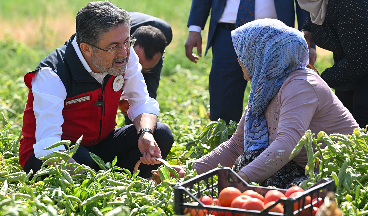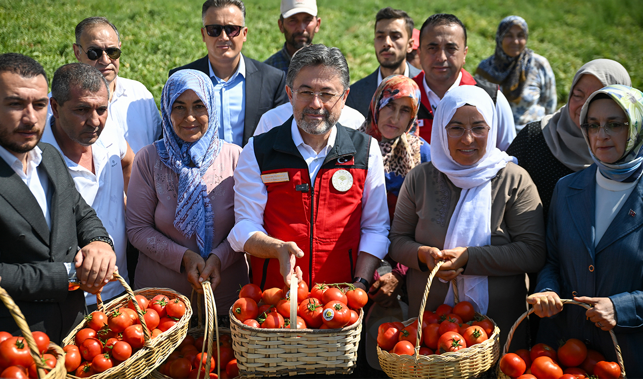 Yumaklı, Ankara'nın Ayaş ilçesinde gerçekleştirilen domates hasadına katılarak, ürün topladı.