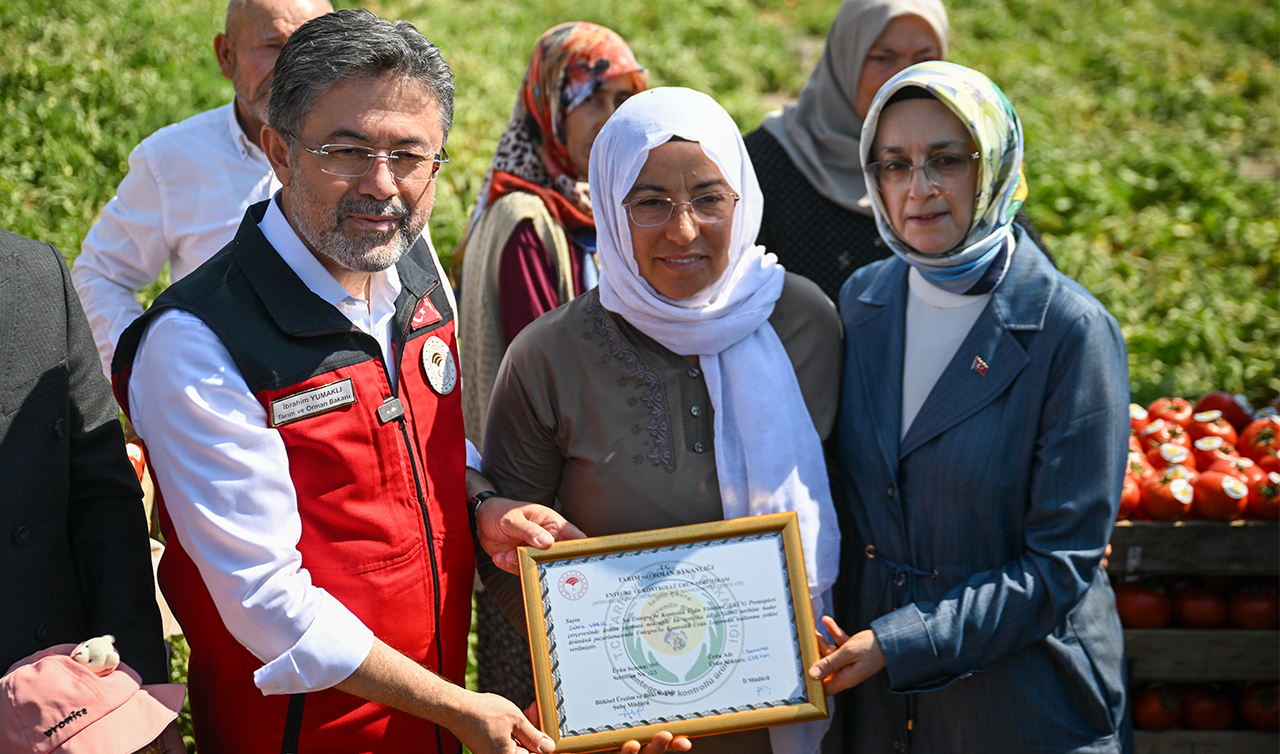 Bakan Yumaklı, konuşmasının ardından EKÜY Projesi kapsamında üretim yapan üreticilere sertifikalarını verdi.