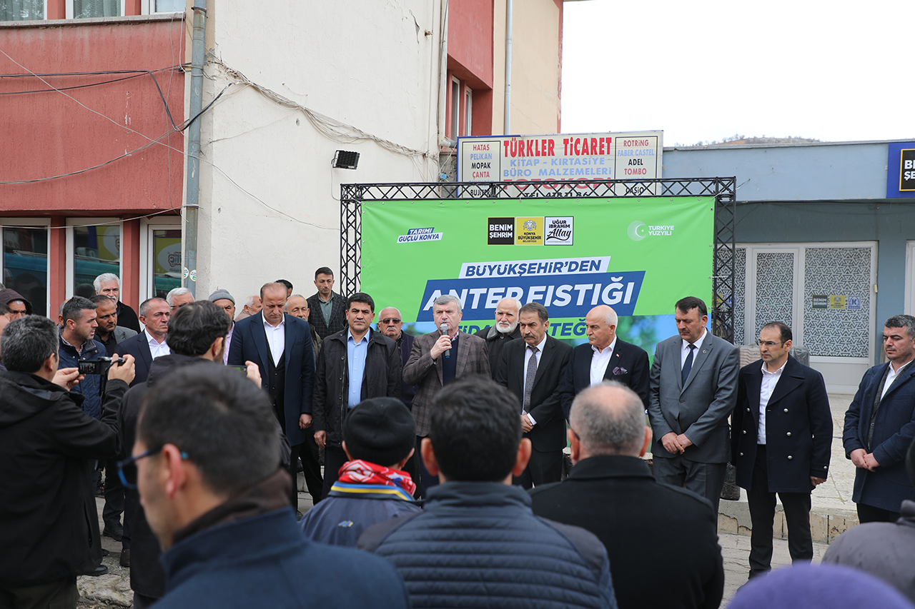 Kırsaldaki en önemli önceliklerinin vatandaşların yaşadıkları bölgelerde refah seviyesini artırmak olduğunu vurgulayan Başkan Altay, “Bu kapsamda mikro klimaya sahip pilot bölge olarak belirlediğimiz Hadim, Taşkent ve Güneysınır ilçelerimizin sınırları içerinde kalan Yerköprü Şelalesi havzasında daha önce deneme amaçlı zeytin ve kestane fidanları dağıtmıştık. Aynı bölge için şimdi de Antep fıstığı fidanı desteği sağlıyoruz. Hadim ve Taşkent ilçemizden üreticilerimize Antep fıstığı fidanı dağıtımı gerçekleştirdik. Çiftçilerimiz için hayırlı ve bereketli olmasını diliyorum” ifadelerini kullandı.