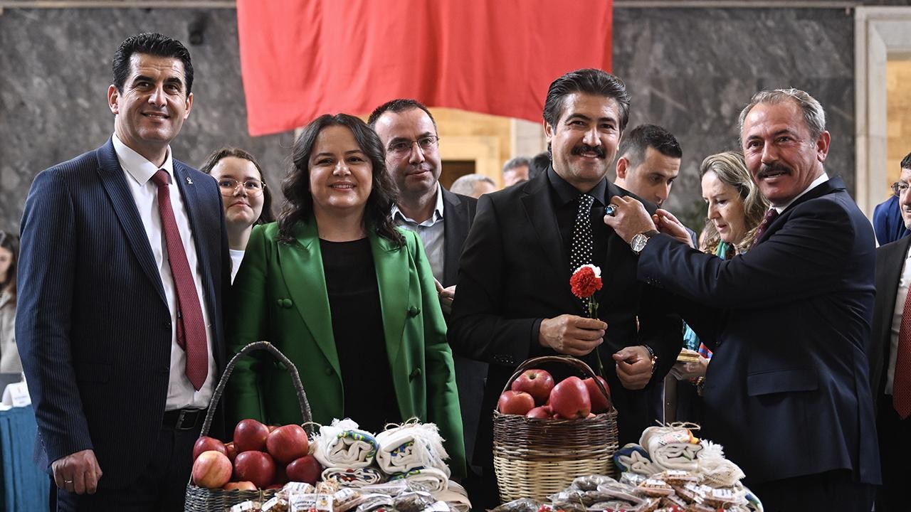Denizli'de birçok ürünün yetiştiğine işaret eden Özkan, Nilgün Ök ve Şahin Tin ile gazetecilere ve çalışanlara getirdikleri yöresel ürünleri ikram etti.