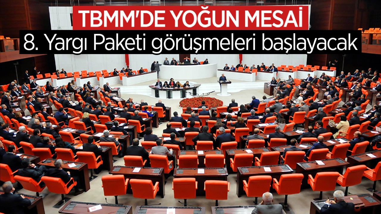 TBMM'yi yeni haftada yoğun bir gündem bekliyor. 8'inci Yargı Paketi'nin görüşmeleri, 20 Şubat'ta Adalet Komisyonu'nda başlayacak. Genel Kurul'da sağlık alanında düzenlemeleri içeren kanun teklifinin görüşmelerine devam edilecek. Turist Rehberliği Meslek Kanunu'nda değişiklik öngören teklifin de bu hafta Genel Kurul'da ele alınması bekleniyor.