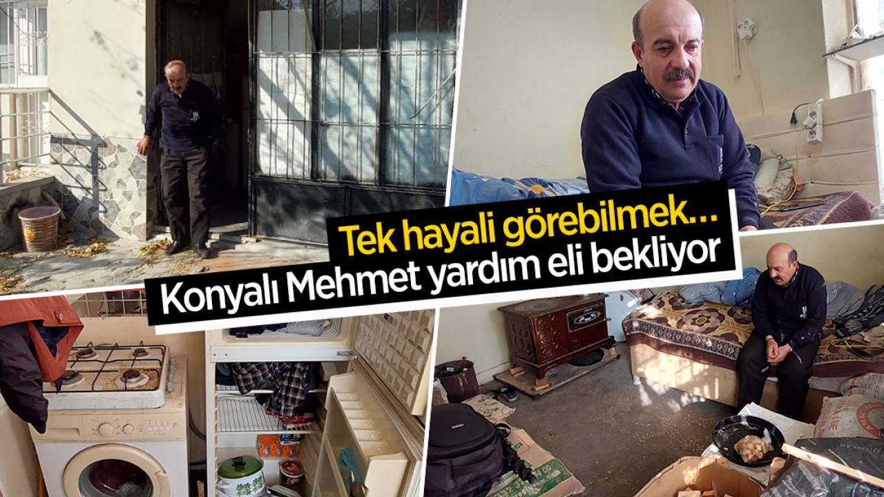 Konyalı Mehmet Kocabıyık yüzde 90 oranında görme engelli. Tedavi olması için maddi durumu yetersiz ve dükkanda yaşam mücadelesi veriyor. 46 yaşında ki Kocabıyık’ın tek dileği ise tedavi olup çocuklarını görebilmek.