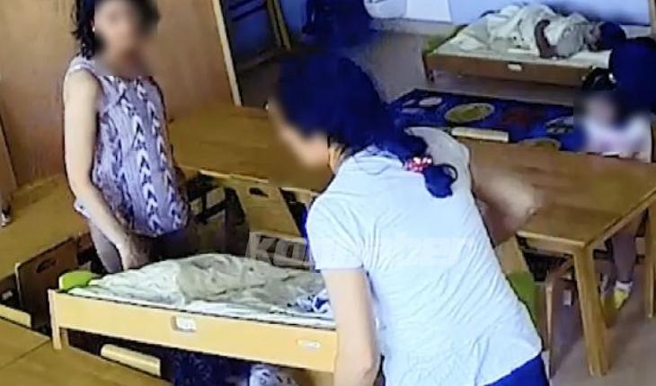 Sınıfın ve yatakhanenin aynı olduğu alanda günlerce çocukların masalarının üzerinde bulunan bir LCD televizyona, çocuğun elinin değmesiyle hırpalanıp, ellerine vurulan bazı çocukların eline verilen peçetelerle televizyon üzerindeki lekelerin sildirilme anları da görüntülere yansırken, öğretmenlerin bazı çocukların giyim ve soyunma anlarında onlara refakat etme yerine sürekli cep telefonlarıyla takındıkları rahat tavırlar kameralara yansıdı.