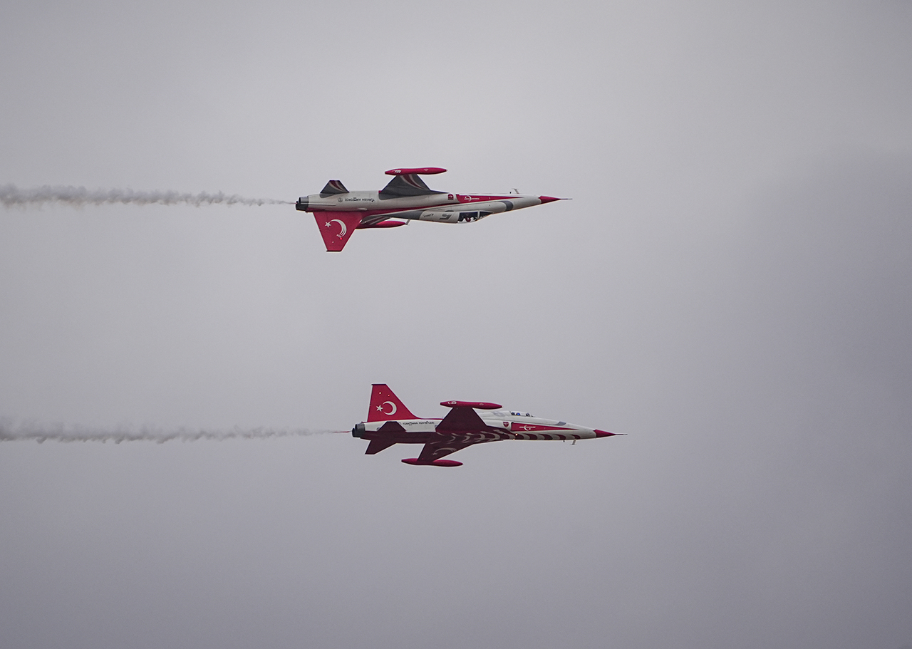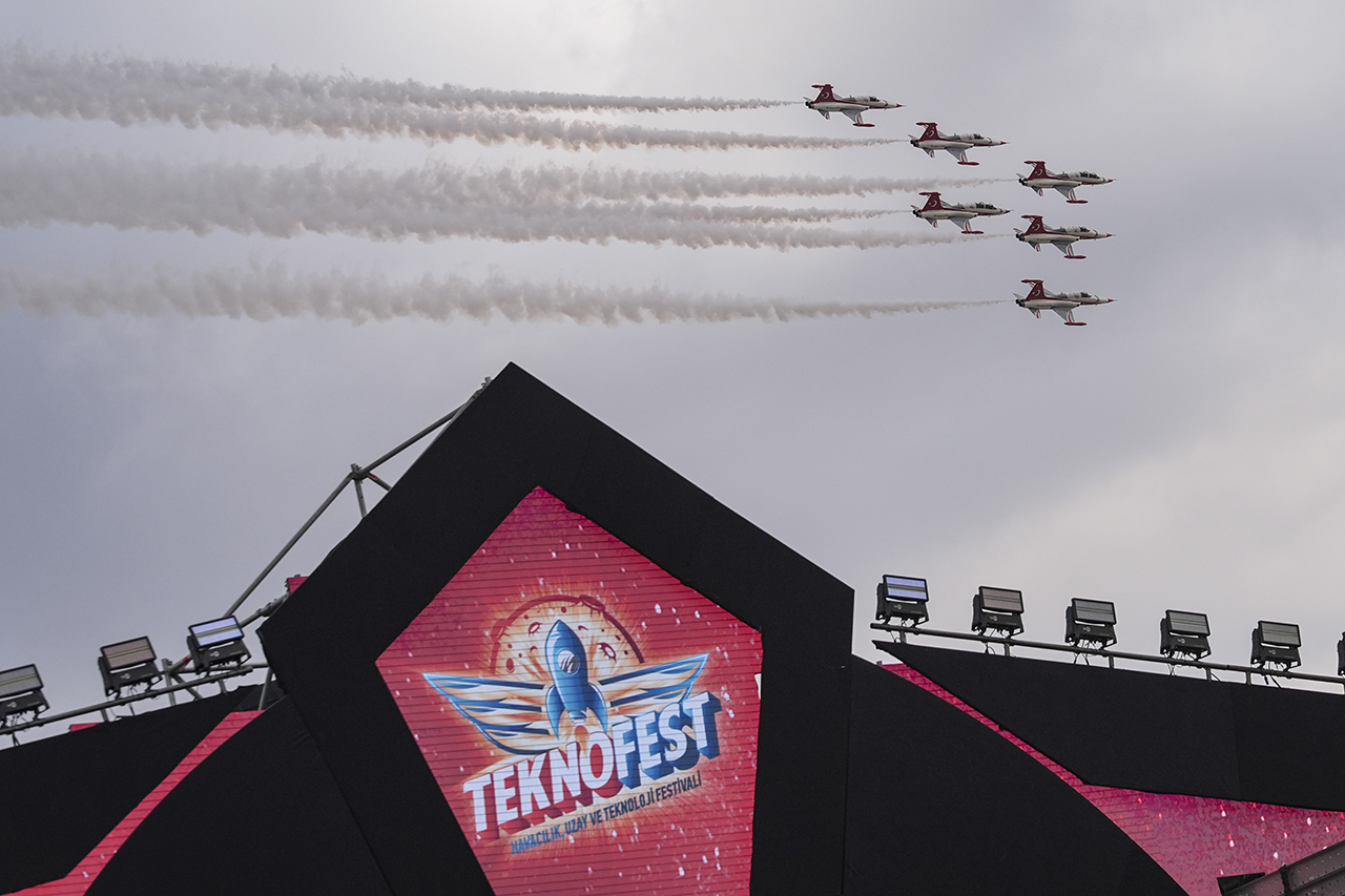 Dünyanın en büyük havacılık, uzay ve teknoloji festivali TEKNOFEST, Kuzey Kıbrıs Türk Cumhuriyeti'nin (KKTC) başkenti Lefkoşa'daki eski Ercan Havalimanı'nda coşkuyla devam ediyor. Türkiye'nin gururu olan akrobasi timi Türk Yıldızları gerçekleştirdiği nefes kesen gösteri uçuşuyla izleyenleri büyüledi.