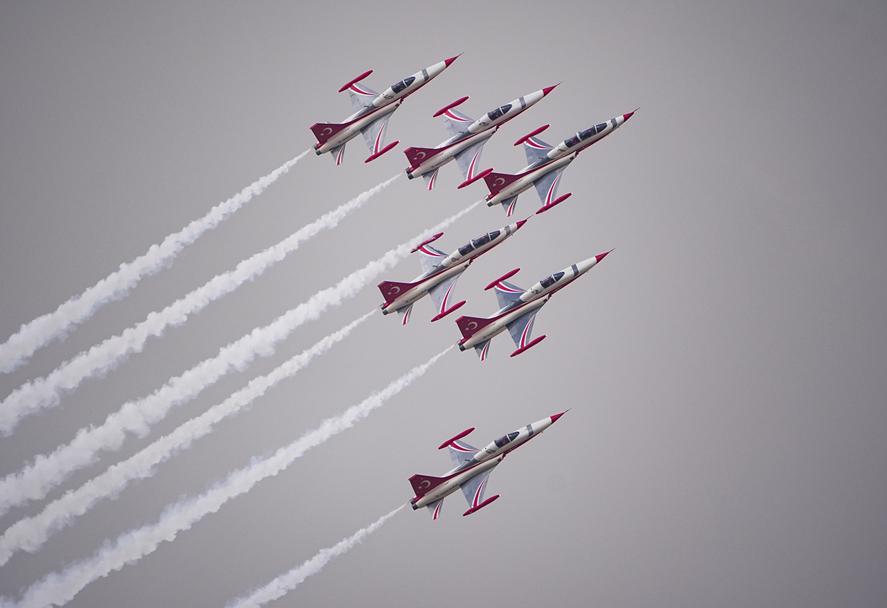 Türkiye'nin gururu olan akrobasi timi Türk Yıldızları, gerçekleştirdiği nefes kesen gösteri uçuşuyla izleyenleri büyüledi.